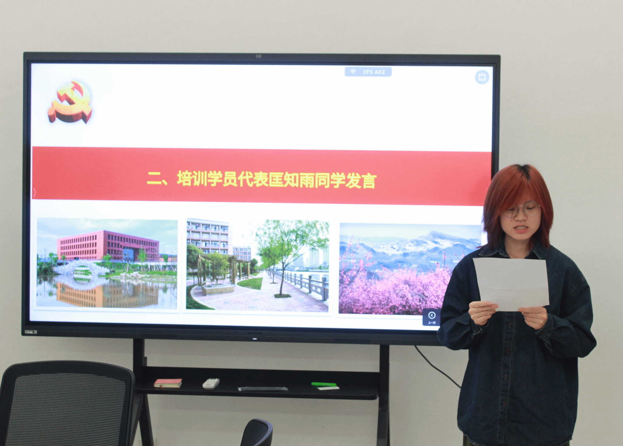 仪式上,党支部书记陈珊珊、培训学员匡知雨分别给予培训学员勉励寄语和分享交流。在接下来的一个月,71名积极分子将通过系统的理论辅导、经典阅读、视频学习、志愿服务、专业实践、主题研讨、交流访谈等专题培训,最终以汇报交流的方式向党组织上交一份“靓丽”的高分答卷。
