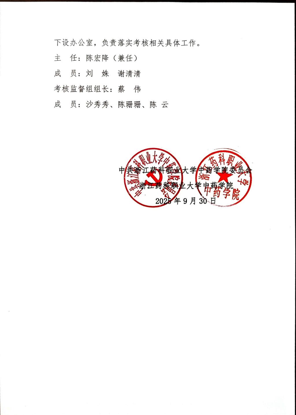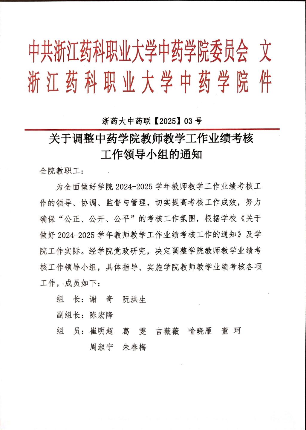 浙药大中药联2025年03号文件——关于调整中药学院教师教学工作业绩考核工作领导小组的通知