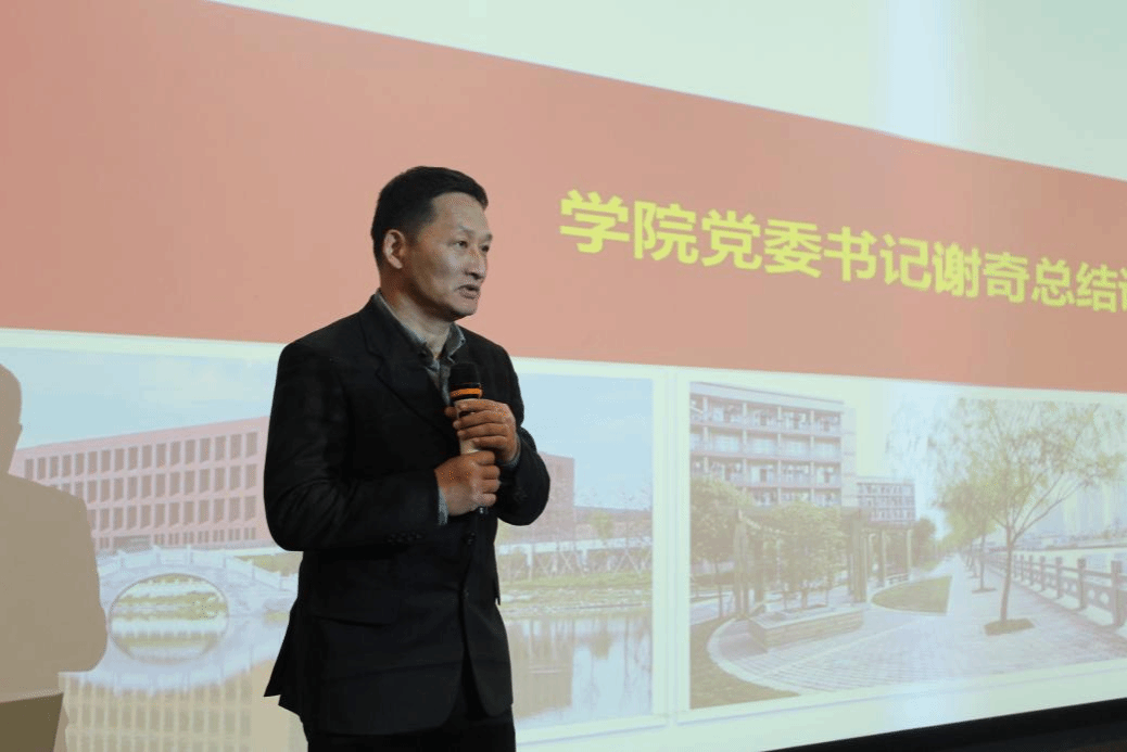 在总结点评环节,学院党委书记谢奇对大赛的成功举办给予了高度评价,谢奇指出:“微党课大赛不仅是党员风采的集中展示,更是一次深刻的理论学习与思想淬炼,是大家向党组织提交的一份高分答卷。大赛的成功举办,充分彰显了学生党支部在理论赋能实践、实践淬炼初心方面取得的显著成效。”谢奇勉励大家:“党的二十届四中全会为我们胜利开启第二个百年奋斗目标描绘了新蓝图,‘创新浙江’和‘健康中国’建设更是为我们矢志奋斗指引了方向。希望全体学生党员要以本次微党课比赛为契机,切实将政治理论学习与实践历练紧密结合,把所思所悟真正转化为砥砺前行的实际行动;要时刻牢记党和国家赋予我们的神圣使命,在专业学习中精进技艺,在服务社会中践行初心,将所学知识服务国家发展和人民健康;要在个人成长成才、服务‘健康中国’和强国建设、民族复兴伟业的征程中不懈奋斗,奋力书写无愧于时代的青春华章。”
