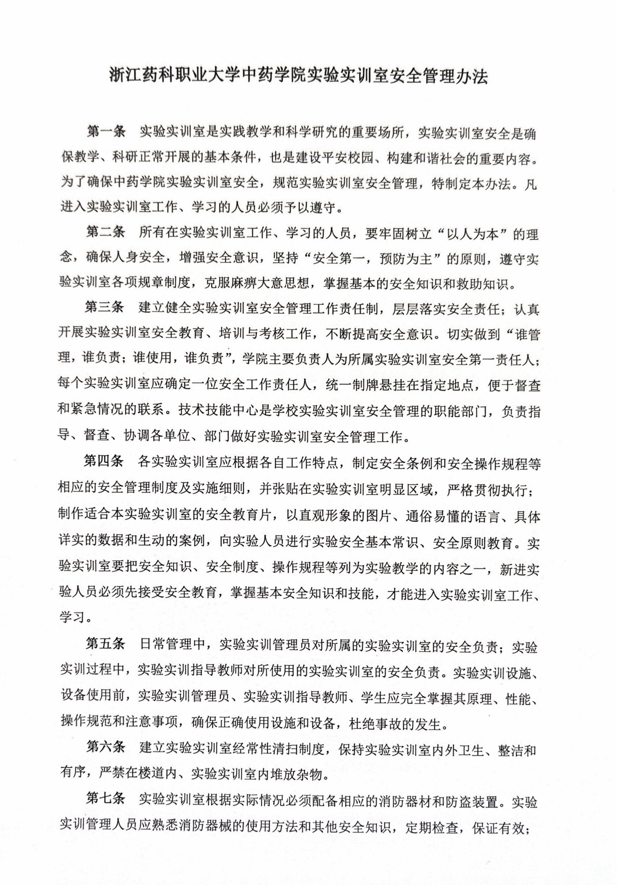 下一条:2025年07号文件 关于印发《浙江药科职业大学中药学院实验实训机械安全管理规定》的通知